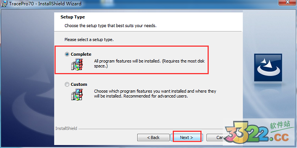5、(complete 完整安裝 custom 自定義安裝)這里建議選擇完整安裝,自定義安裝的話可能有些功能會(huì)使用不了,選擇好之后然后點(diǎn)擊“next