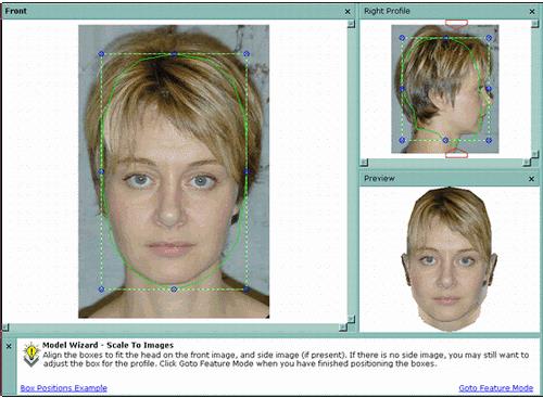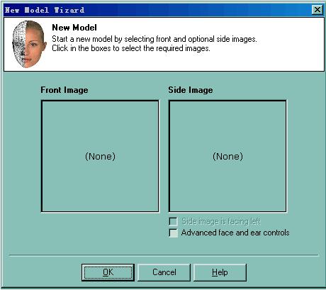 (3) 用同樣的方法選取側(cè)視圖。如沒有側(cè)視圖也可以不選。如使用的是左視圖,請(qǐng)將Side Image框下的Side image is facing left 復(fù)選框選中。如果你要對(duì)臉和耳朵進(jìn)行精確控制,請(qǐng)將Side Image框下的Advanced face and ear controls 復(fù)選框選中。選好后,點(diǎn)擊"OK"按鈕,進(jìn)入操作界面。