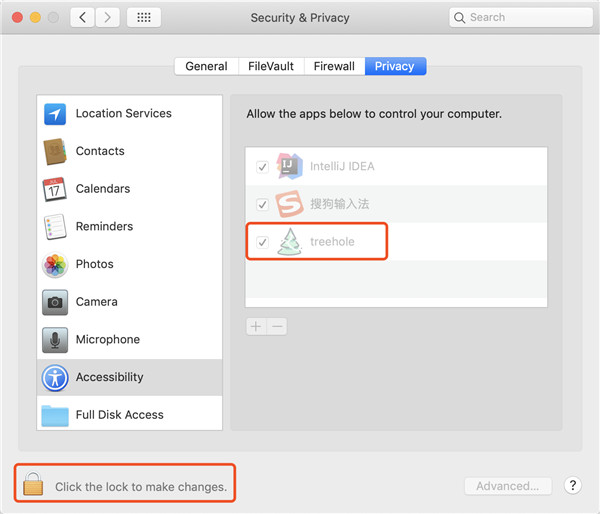由于監(jiān)控了截圖快捷鍵,因此MAC需要開啟相應(yīng)的權(quán)限,請(qǐng)見下圖: