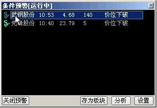 在預(yù)警列表上雙擊“價位下破”或者“價位上破”的股票項,將彈出閃電賣出或者閃電買入的對話框,如下圖: