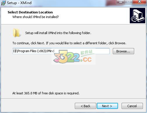 3、選擇安裝路徑,建議將xmind 8 破解版安裝在其他磁盤,比如:D盤。