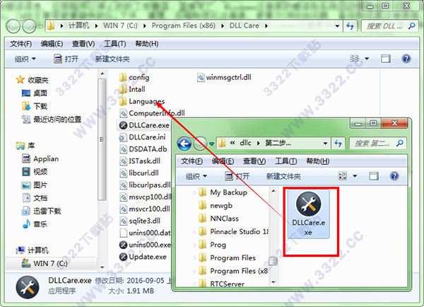 1.安裝好后,先不要打開軟件,回到數(shù)據(jù)包中將破解文件“DLLCare.exe”復制到軟件的安裝目錄中“C:\Program Files (x86)\DLL Care”