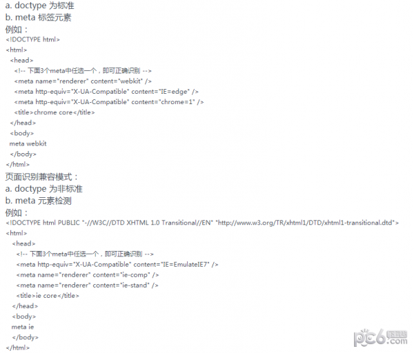 如您是網(wǎng)站的開發(fā)者,可以通過在頁面標簽中添加代碼,來指定網(wǎng)站的默認內(nèi)核,頁面識別極速模式: