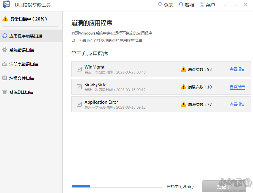(1)掃描和檢測DLL文件錯誤:該軟件可以自動掃描和檢測系統(tǒng)中的DLL文件錯誤,并給出詳細(xì)的錯誤報告。