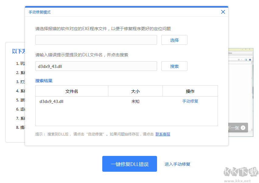 d3dx9_43.dll修復(fù)工具是一種功能強大的系統(tǒng)工具,它可以幫助用戶快速定位和修復(fù)系統(tǒng)中的DLL文件錯誤,提高系統(tǒng)性能和穩(wěn)定性。該軟件具有簡單易用的界面和強大的功能,適用于各種Windows操作系統(tǒng),包括Windows XP、Windows 7、Windows 8和Windows 10等!有需要的朋友不要錯過,KK下載站推薦大家下載體驗!