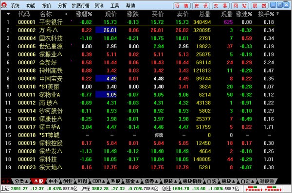8.敲打“57”回車鍵后,就出現(xiàn)“無基金A股”報(bào)價(jià)單。