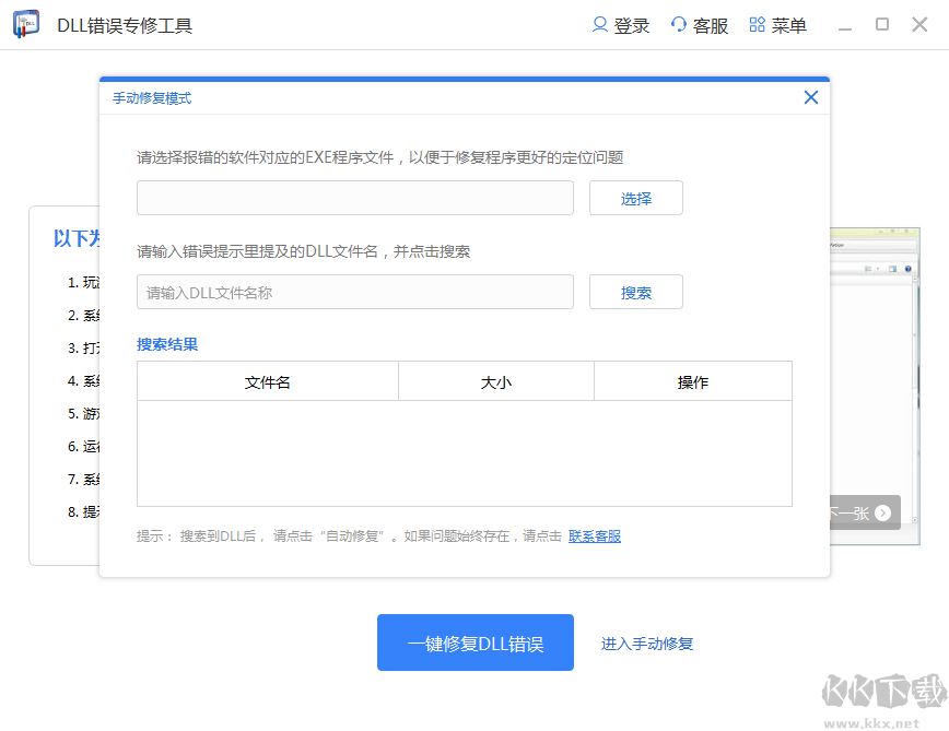 2.選擇一鍵修復(fù)DLL錯(cuò)誤或者進(jìn)入手動(dòng)修復(fù)