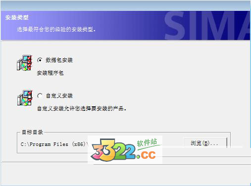 2、選擇安裝類型,此處勾選“數(shù)據(jù)包安裝”并點(diǎn)擊選擇安裝目錄,默認(rèn)目錄為C:\Program Files(X86)\,可點(diǎn)擊“瀏覽”更改路徑。若無誤則點(diǎn)擊下一步