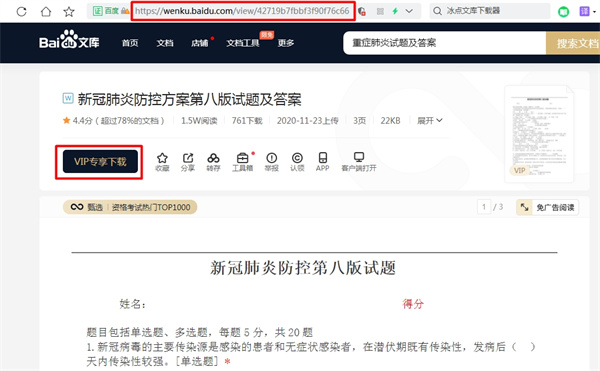2、比如我們這里需要下載一篇帶有VIP標(biāo)識的文檔,這里直接下載的話會提示你開通會員,這里我們直接復(fù)制上面的鏈接然后回到軟件粘貼。