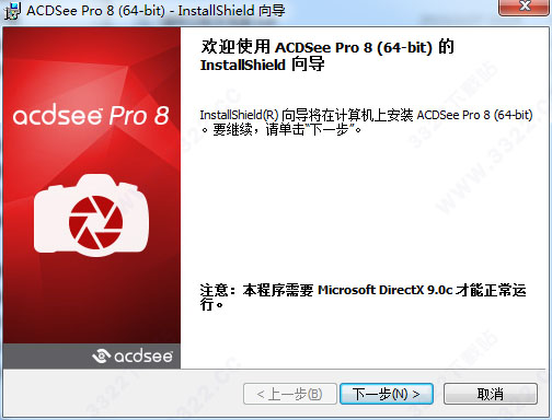2.下載好數據包后,直接解壓用鼠標雙擊“ACDSeePro8.0.1.70_Lite_x64.msi”打開進入安裝向導,點擊下一步
