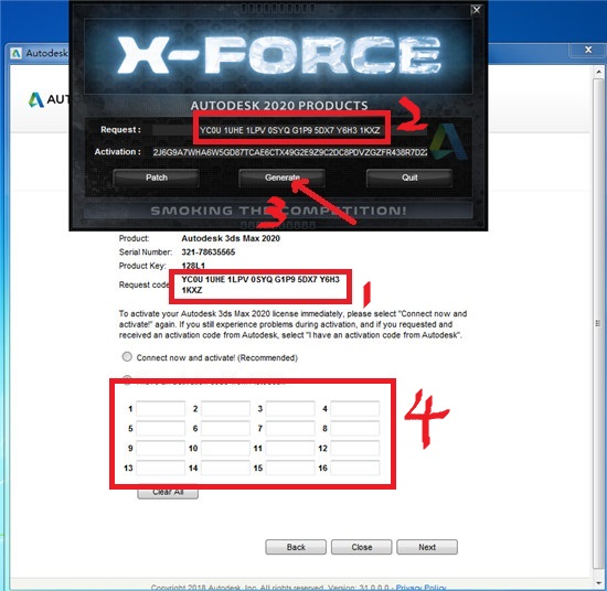 將生成的激活碼復(fù)制粘貼到圖中箭頭所指的位置,點(diǎn)擊Next。。