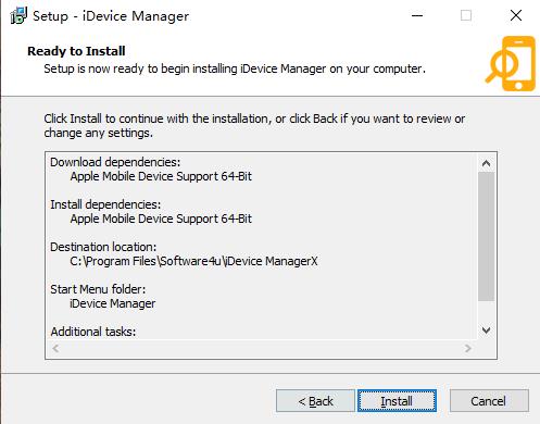 安裝向?qū)J(rèn)設(shè)置的軟件默認(rèn)安裝路徑為C:\Program Files\Software4u\iDevice ManagerX