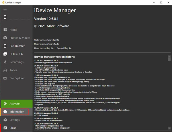 8、雙擊打開iDevice Manager破解版軟件,點(diǎn)擊Information,如下圖軟件破解完成,可以放心使用軟件