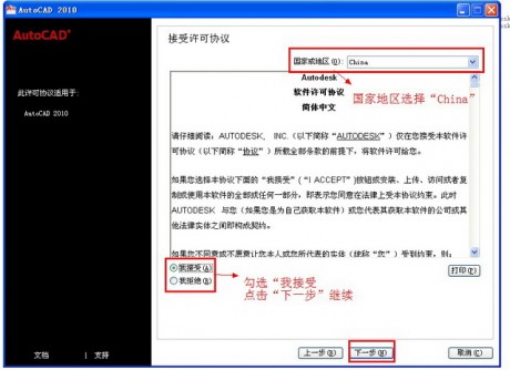 國家地區(qū)選擇“China”勾選“我接受”點擊“下一步”繼續(xù)安裝 如圖五。