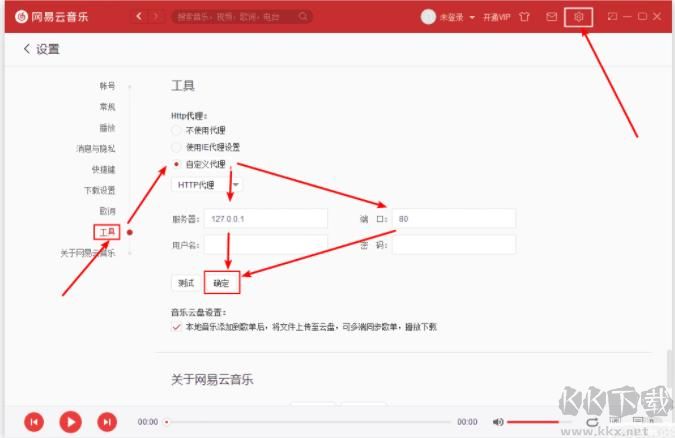 1、先在網易云音樂 Windows 客戶端設置代理服務器: