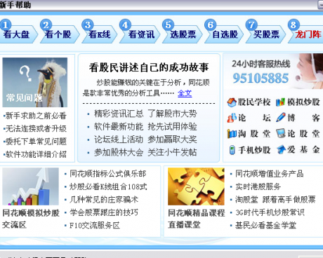 新手幫助共分7課教程,分別是:看大盤、看個股、看K線、看資訊、選股票、自選股、買股票,均配有圖文教程,需要深入學習可查看相應(yīng)的視頻教程。
