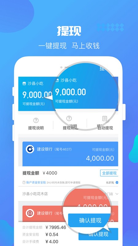 2.智能提現(xiàn):支持多種提現(xiàn)模式,即時(shí)提現(xiàn),隔日到賬,T+1到賬。