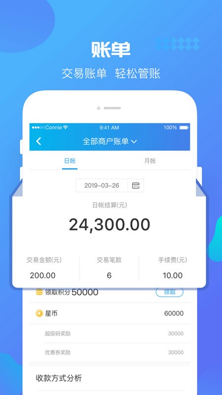 3.財(cái)務(wù)管理:交易劃款信息實(shí)時(shí)查詢。日賬單、月賬單信息清晰展示。