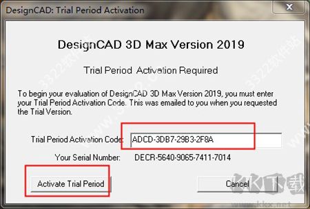 7、打開桌面上生成的DesignCAD 3D MAX 2019圖標(biāo),彈出激活窗口,輸入激活碼【197E-B9AA-E454-4634】
