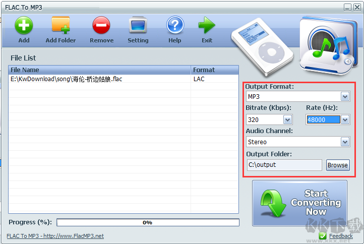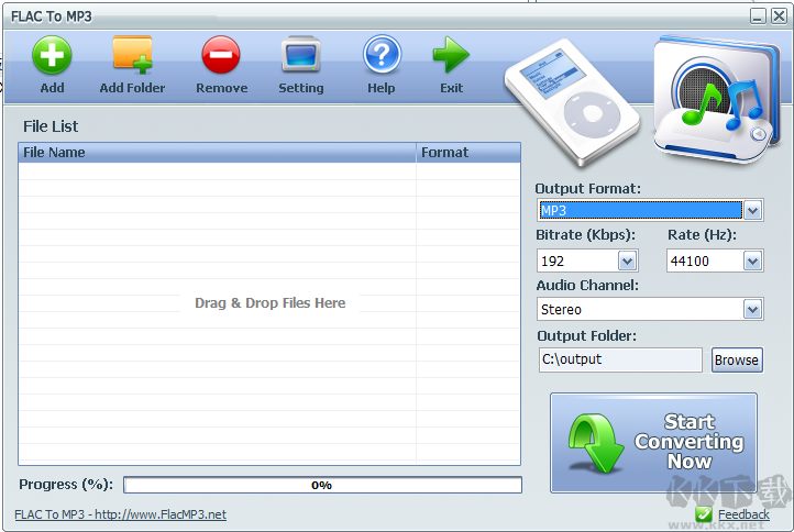 很多朋友從網(wǎng)上下載到FLAC格式的音樂(lè)在車(chē)子上卻不能播放~好吧,有一些車(chē)子上并不支持,并且FLAC文件也大很多,所以有時(shí)我們需要將FLAC轉(zhuǎn)換為MP3格式,KK下載站給大家找到的FLAC轉(zhuǎn)換MP3工具(FLAC To MP3)可以很好的解決這個(gè)問(wèn)題,