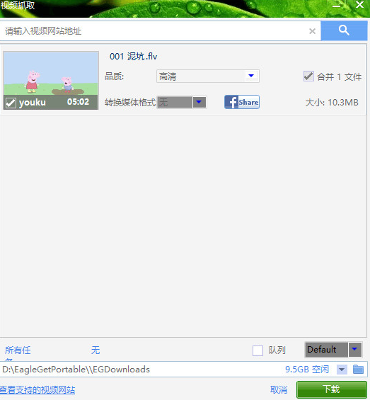 EagleGet Video Grabber 支持解析很多視頻網(wǎng)站,可以到這里查看具體支持的視頻網(wǎng)站列表,如果有 EagleGet 不能搜索的視頻,可以試試 FLVCD 碩鼠 視頻解析下載工具。