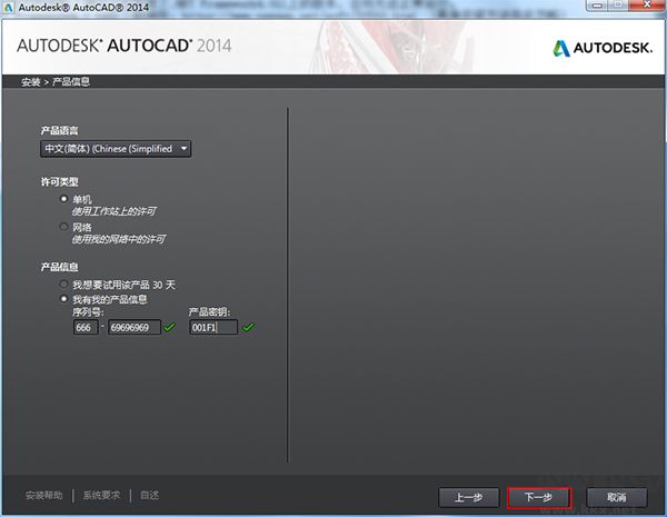 2.輸入序列號666-69696969或者667-98989898,輸入產(chǎn)品密匙為001F1;