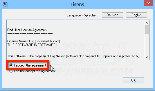 1、雙擊執(zhí)行「StressMyPC.exe」文件。出現(xiàn)如下的畫面時(shí),點(diǎn)「I accept the agreement」再按「OK」按鈕即可開始使用。