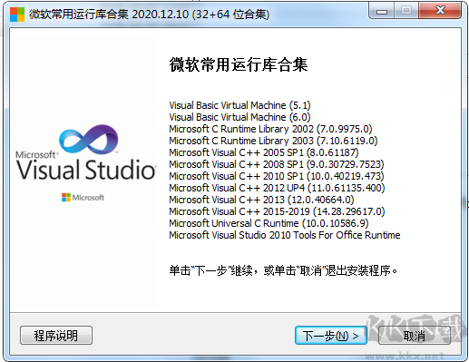 微軟常用運(yùn)行庫合集安裝包含下列組件: