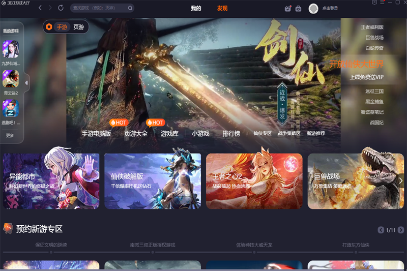 360游戲大廳是一款由360公司推出的游戲大廳,用戶可以在這里查找到眾多的游戲進(jìn)行暢玩,支持用戶預(yù)約新游戲等待上線時提醒用戶前來試玩,超多好玩的精美游戲,各種國風(fēng)游戲、裝扮、經(jīng)營、技巧等等游戲眾多,分類詳細(xì),畫質(zhì)高清,讓用戶暢玩,不用再擔(dān)心沒有好玩的游戲體驗(yàn)啦,感興趣的用戶快來下載體驗(yàn)吧~