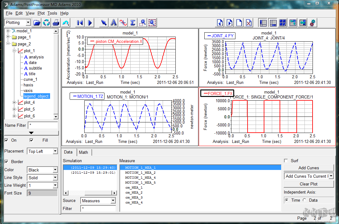 Adams 軟件還包含一套強(qiáng)大的仿真分析工具。它可以進(jìn)行靜態(tài)和動(dòng)態(tài)分析、正向和反向動(dòng)力學(xué)分析、頻域分析和最優(yōu)化等。用戶可以通過仿真預(yù)測系統(tǒng)的響應(yīng)、評估系統(tǒng)的性能、優(yōu)化系統(tǒng)設(shè)計(jì),并進(jìn)行故障診斷和可靠性分析。此外,Adams 還支持多種仿真結(jié)果的可視化,包括軌跡、力和力矩曲線、動(dòng)畫等,以幫助用戶更好地理解和解釋仿真結(jié)果。
