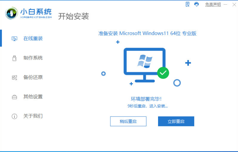 1、先下載運行小白系統(tǒng),然后等待環(huán)境部署完成,一鍵式操作無需電腦基礎知識,簡單操作即可一鍵重裝系統(tǒng)。