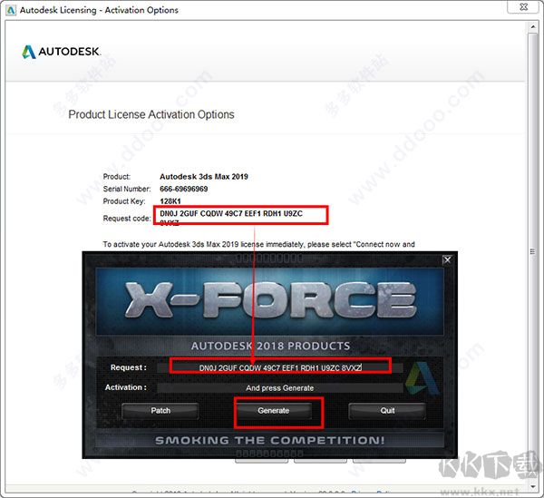 復(fù)制請(qǐng)求碼(request code)到注冊(cè)機(jī)并點(diǎn)擊generate(生成)。