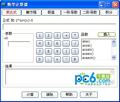 本站為您提供高級數(shù)學(xué)計算器下載,數(shù)學(xué)計算器中提供了表達(dá)式、解方程、極值、一階導(dǎo)數(shù)、二階導(dǎo)數(shù)、積分等高級數(shù)學(xué)計算方式,可以幫助用戶快速計算出所需的數(shù)值,是一款非常好用的輔助計算軟件。KK下載站為您提供數(shù)學(xué)計算器 v3.0綠色免安裝版下載,需要高級數(shù)學(xué)計算器的朋友趕緊下載使用吧!