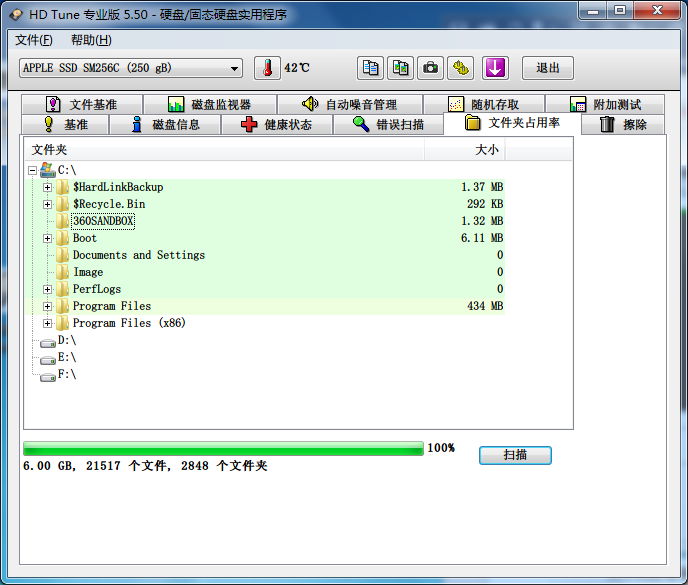 文件夾占有率這個是掃描文件夾大小,能查看每個文件夾占用的空間: