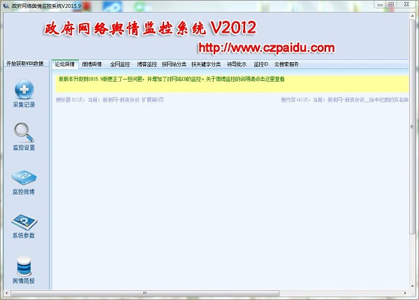 網(wǎng)絡(luò)輿情監(jiān)控軟件2021免費(fèi)版是一款用于監(jiān)控網(wǎng)絡(luò)輿情的軟件,現(xiàn)以可以完美使用!這款政府網(wǎng)絡(luò)輿情監(jiān)控系統(tǒng)可以全網(wǎng)輿情監(jiān)控系統(tǒng),關(guān)于您的輿情信息,全網(wǎng)范圍內(nèi)無死角實(shí)時(shí)抓取新聞,論壇,微博,博客,貼吧,微信,電子報(bào),視頻,搜索引擎...一條負(fù)面信息的處理稍有不慎,就可能引發(fā)品牌、形象的坍塌,政府和企業(yè)都已經(jīng)意識(shí)到了輿情監(jiān)測(cè)的重要性。