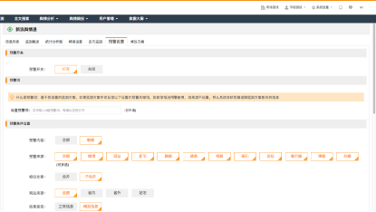 最后,建議在“預(yù)警設(shè)置”里打開“預(yù)警開關(guān)”,系統(tǒng)將會(huì)根據(jù)設(shè)置,把互聯(lián)網(wǎng)上新出現(xiàn)的相關(guān)信息第一時(shí)間通過郵件、APP、微信、WEB彈窗、短信等方式進(jìn)行告知。