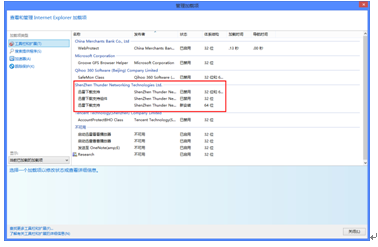 【1】打開IE瀏覽器的工具 =》管理加載項,將迅雷下載支持和下載支持組件都啟用。