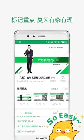 2、強大產(chǎn)品功能:離線緩存,無限次視頻回放隨時隨地放心聽課;標記重點,復(fù)習效率飛速提升;分享課程,好課大家一起學。