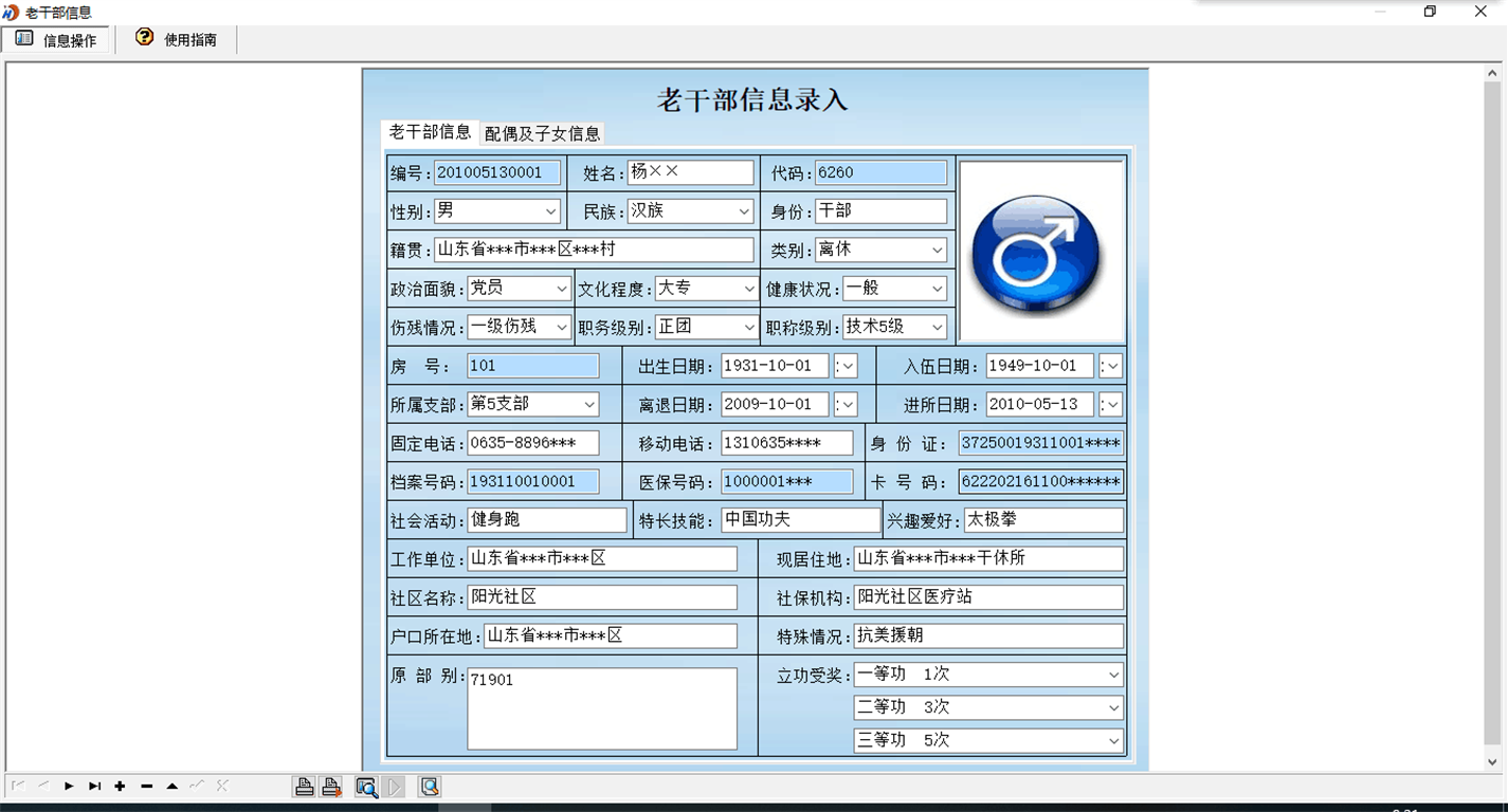 1、輸入功能:該系統(tǒng)提供了對老干部信息的資料錄入功能。