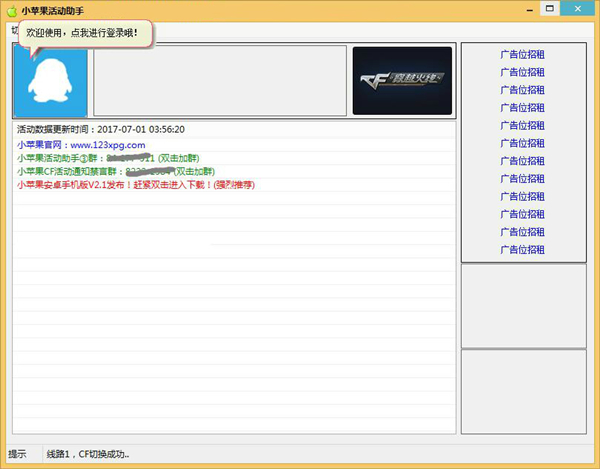 CF小蘋果活動助手是一款可以一鍵領(lǐng)取CF所有活動,獎勵(lì)的小工具,CF官網(wǎng)經(jīng)常會推出一些游戲活動,通常會贈送一些道具,活動名額也是有限的,通過CF小蘋果活動助手就可以快速一鍵領(lǐng)取所有獎勵(lì)了有喜歡的CF玩家不要錯(cuò)過。