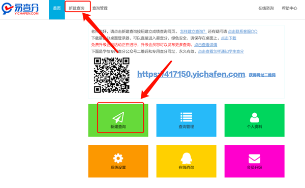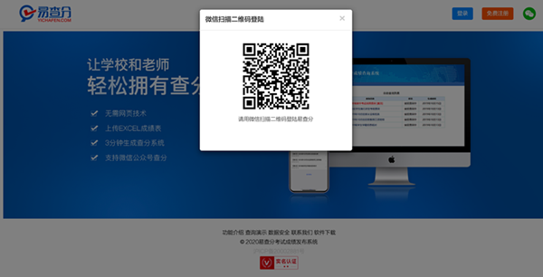 首先登陸易查分(登陸方式1:點(diǎn)擊頁(yè)面“登陸”按鈕,輸入用戶名和密碼登陸;登陸方式2:掃描二維碼直接登陸);