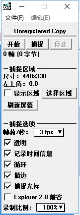 1、將從本站下載的壓縮包文件解壓,在解壓出來的文件夾中雙擊“ggg.exe”即可直接運行這款軟件。 2、打開軟件后點擊“選擇區(qū)域”按鈕選擇需要捕獲的屏幕區(qū)域,然后點擊“開始”按鈕,錄制結束后點擊“停止”按鈕即可完成錄制。 3、軟件支持用戶對幀數(shù)、透明度、循環(huán)、描邊、是否捕捉光標等進行自定義設置,以獲得自己滿意的GIF圖片。
