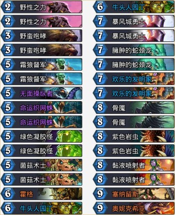 超生德卡組相比鋪場(chǎng)術(shù)的上限是更高的,通過(guò)高強(qiáng)度的BUFF進(jìn)行全體屬性的強(qiáng)化,亂斗卡組解場(chǎng)能力都很差的,我們?nèi)绻_(kāi)局拿到了一點(diǎn)優(yōu)勢(shì)就可以直接鋪起來(lái)打臉,同為鋪場(chǎng)卡組如果來(lái)解場(chǎng)必輸。這里塞納留斯、園丁、菌菇、織網(wǎng)蛛、野性之力暴風(fēng)城等等都是BUFF類的。而鋪場(chǎng)類特意增加了霍格、凝膠怪等等牌進(jìn)行有效鋪場(chǎng),防止卡手情況。