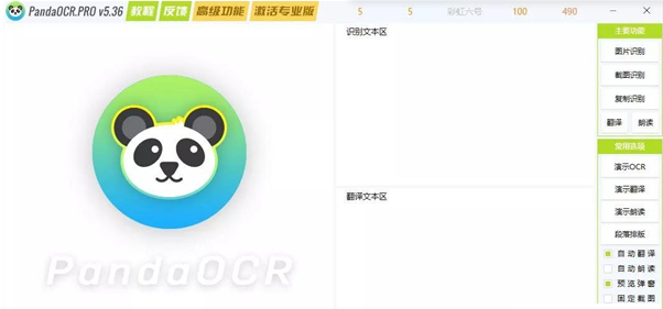 1、PandaOCR是網(wǎng)友miao_miao在GitHub上建立的一個項目。它主打OCR文字識別,并附帶有自動翻譯、語音朗讀和彈窗提醒功能。PandaOCR最大的特點,就是完全免費無廣告,不會有任何功能限制。