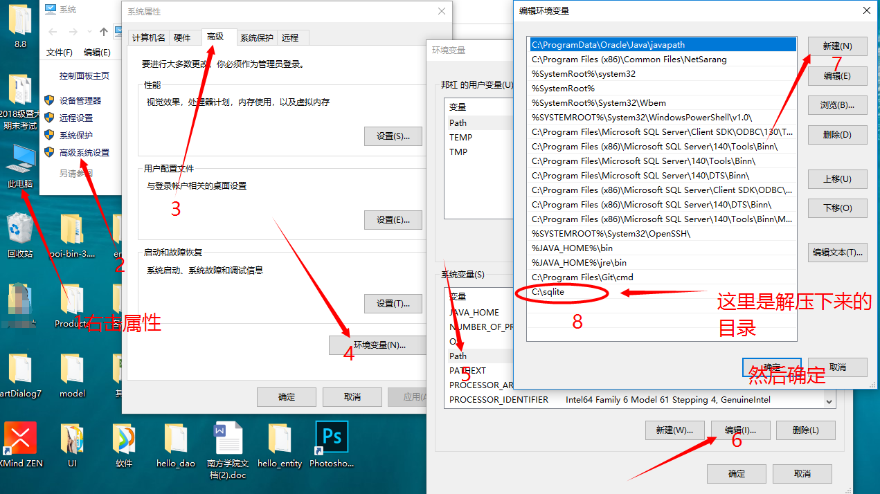 2、我的電腦右擊->屬性->高級(jí)系統(tǒng)設(shè)置->高級(jí)->環(huán)境變量->Path->編輯->新建->[你的安裝目錄]->ok