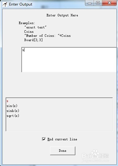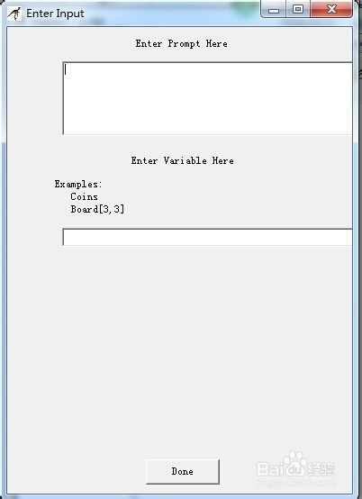 雙擊剛剛添加的哪個輸入框,會出現(xiàn)一個提示框,在enter prompt here框中輸入提示信息,注意提示信息要用英文的雙引號包括起來。在enter variable here中輸入變量名。完成之后,單擊"done"。www.qabbs.com
