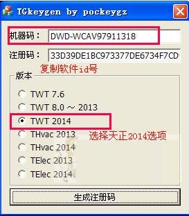 7、選擇“TWT2014”,再點(diǎn)擊“生成注冊(cè)碼”按紐,生成軟件注冊(cè)碼;