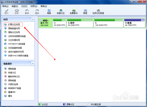 安裝后打開軟件,選擇主頁面左側(cè)“擴(kuò)展分區(qū)向?qū)?rdquo;。