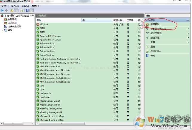 2、在“高級(jí)安全 windows 防火墻”頁(yè)面 左側(cè) 找到 “入站規(guī)則”右鍵點(diǎn)擊“新建規(guī)則”。