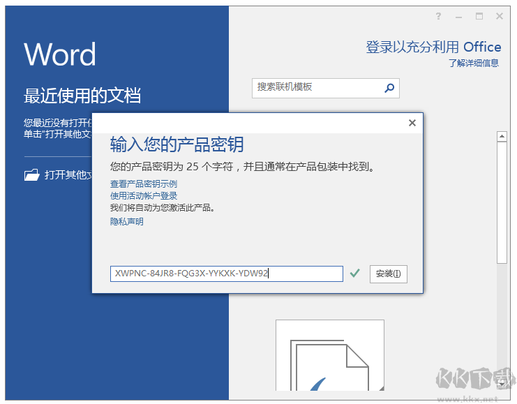 零售版(Retail)Office 2016激活密鑰輸入窗口